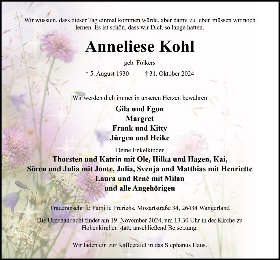 Mit Bestürzung haben wir vom Tod von Tante Anneliese erfahren und sind sehr traurig darüber.