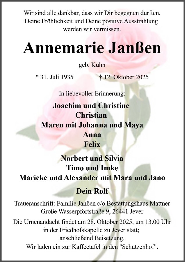 gestorben am 12. Oktober 2025 in Schortens