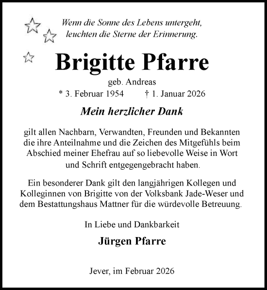 Wir übermitteln dir unsere aufrichtige Anteilnahme zum Tod von Brigitte!