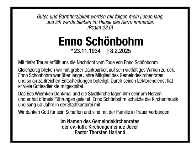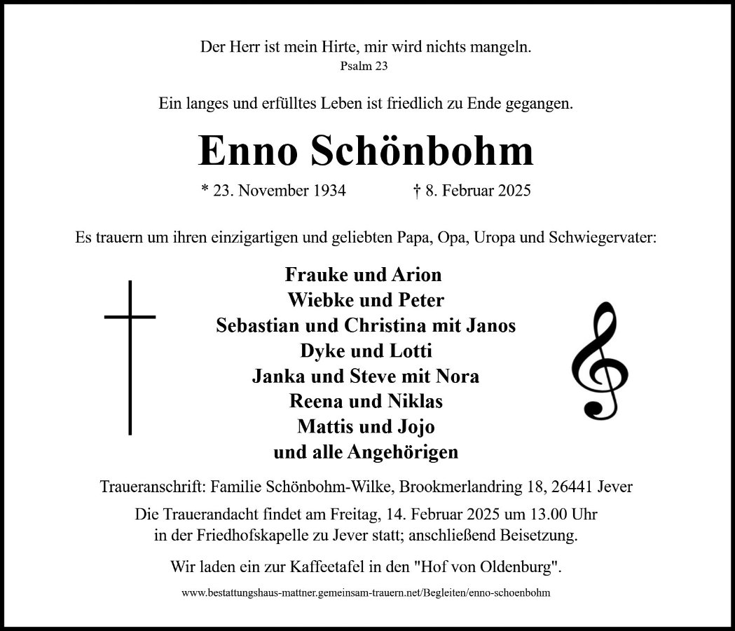 Auch nach dem Tod seiner lieben Elke, unserer Mutter, hat er nicht seine Lebensfreude verloren und seinen Alltag weitestgehend bis zuletzt eigenständig und aktiv gestaltet. Unser besonderer Dank gilt hier dem Pflegedienst Eschen, der ihn dabei liebvoll unterstützt hat. Besonders Daniela und Elke, die ihn hauptsächlich umsorgt haben, waren ihm eine immer liebgewonnene Unterstützung.