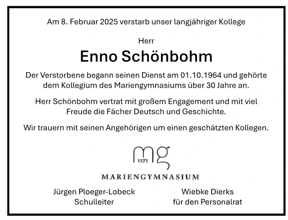 Er war für uns zeitlebens ein liebevoller und verantwortungsvoller Vater. Viele Jahre war er als Deutsch- und Geschichtslehrer am Mariengymnasium tätig. Sein umfangreiches Wissen hat er immer gerne geteilt. In den letzten Jahren seiner aktiven Tätigkeit hat er ganz viel Herzblut in den Aufbau der Schulbibliothek in ihrer heutigen Form fließen lassen. Er liebte die Kunst und die Musik, spielte selber Geige in verschiedenen Orchestern. Bis ins hohe Alter sang er in Chören und besuchte zeitlebens gerne Konzerte - überwiegend der klassischen Musik.