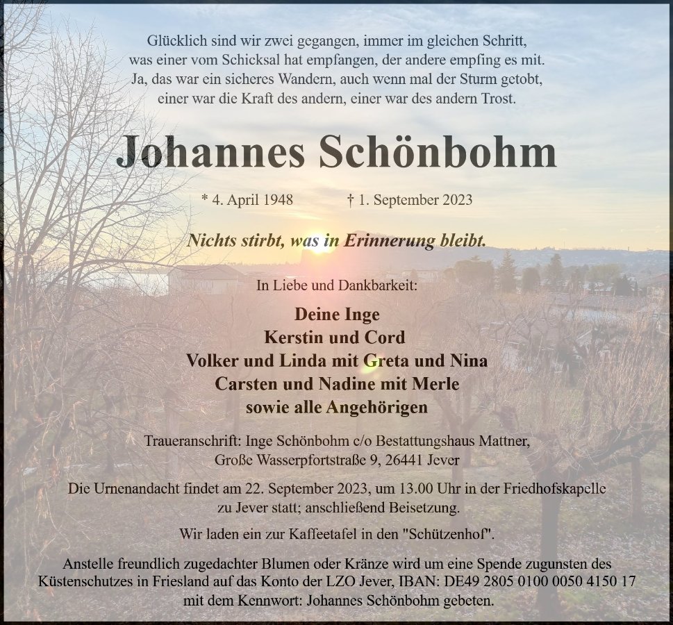 ich habe erst jetzt erfahren, dass Hans nicht mehr in Eurer Mitte lebt.