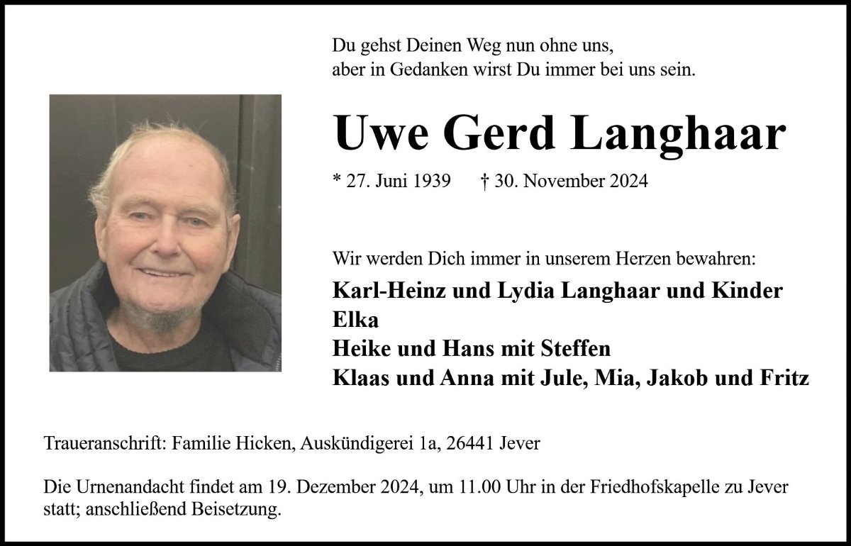 geboren am 27. Juni 1939 in Wilhelsmhaven